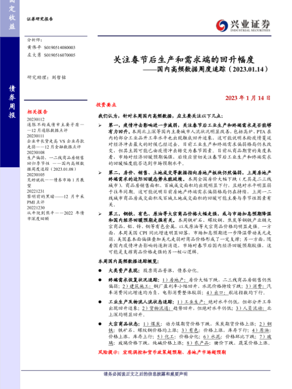 【兴业证券】【20230114】国内高频数据周度追踪:关注春节后生产和需求端的回升幅度-17页