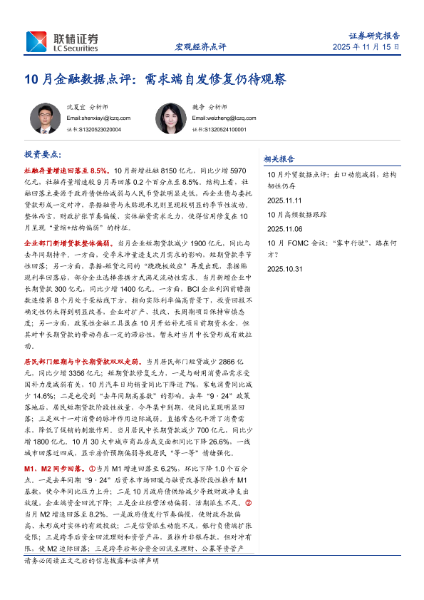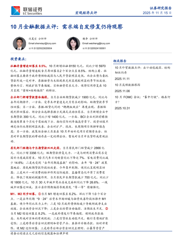 【联储证券】【202511】10月金融数据点评:需求端自发修复仍待观察-10页