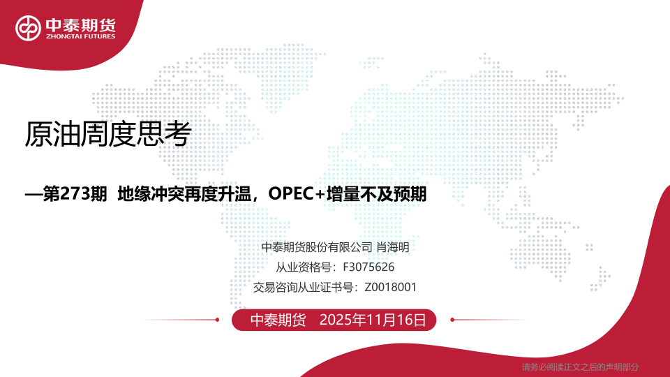 【中泰期货股份有限公司】【202511】原油周度思考—第273期 地缘冲突再度升温,OPEC+增量不及预期-95页