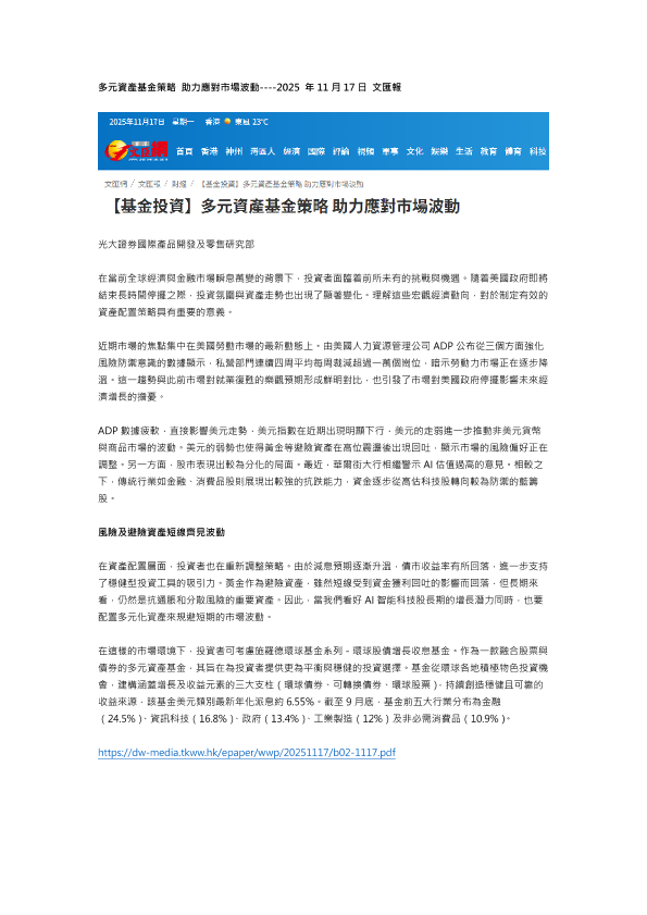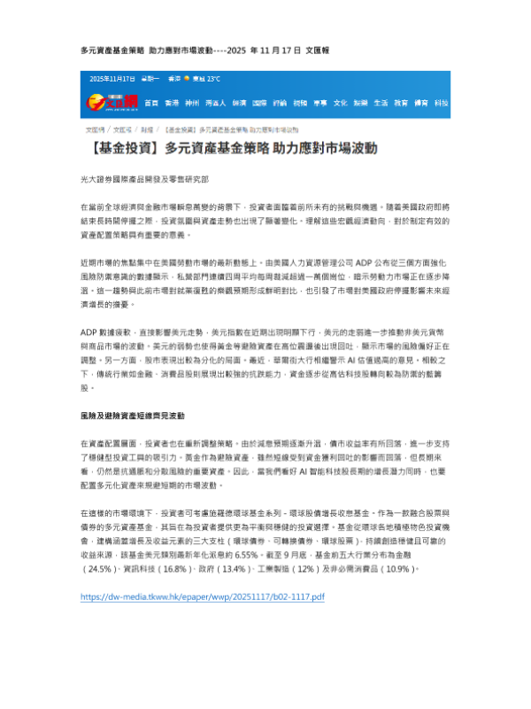 【光大证券国际产品开发及零售研究部】【202511】多元資產基金策略助力應對市場波動-1页