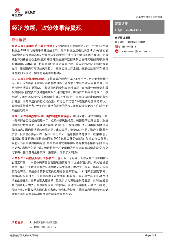 【五矿证券】【202511】经济放缓,政策效果待显现-9页