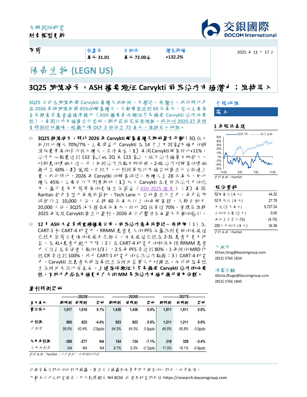 【交银国际】【202511】3Q25继续减亏,ASH摘要验证 Carvykti前线治疗市场潜力;维持买入-6页