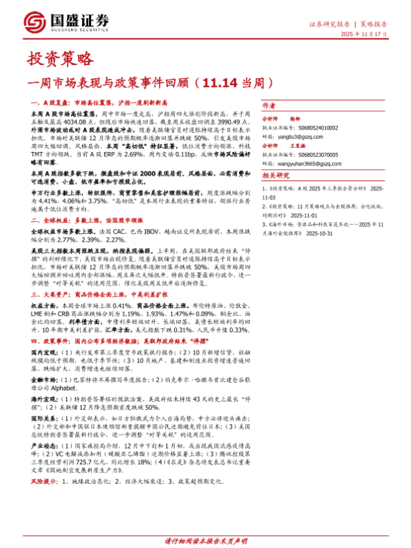 【国盛证券】【202511】一周市场表现与政策事件回顾(11.14当周)-11页