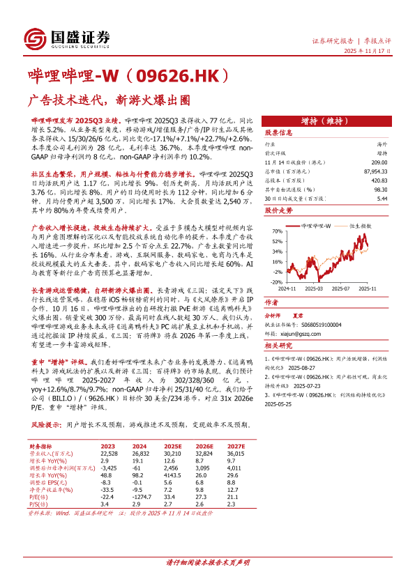 广告收入增长 哔哩哔哩 新游表现 游戏业务 用户活跃度