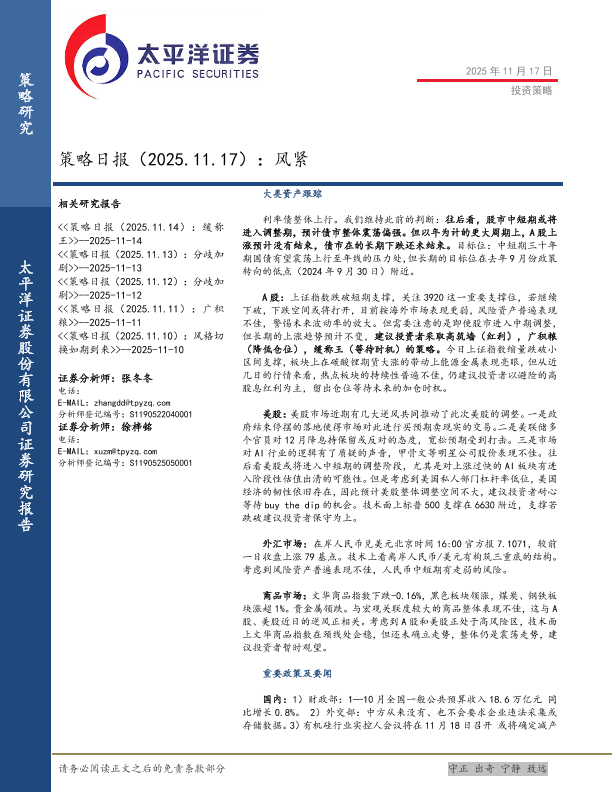 【太平洋证券】【202511】策略日报(2025.11.17):风紧-12页