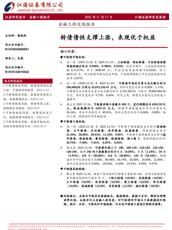 【江海证券】【202511】转债债性支撑上涨,表现优于权益-12页