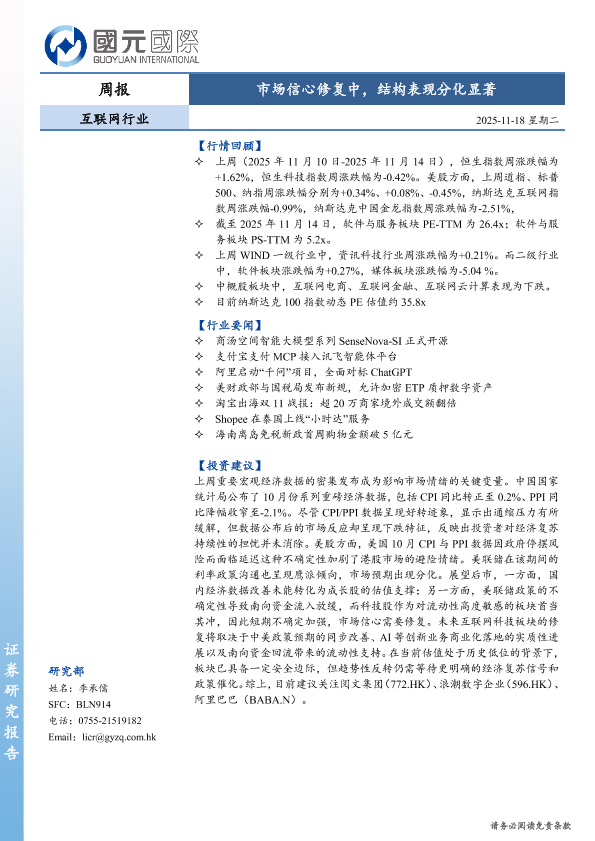 【国元国际】【202511】市场信心修复中,结构表现分化显著-11页
