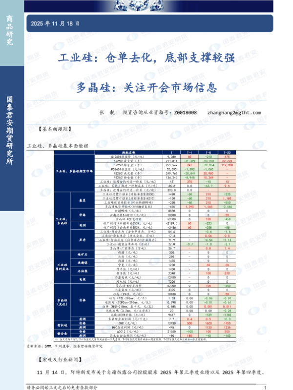 【国泰君安期货】【202511】工业硅:仓单去化,底部支撑较强 多晶硅:关注开会市场信息-3页