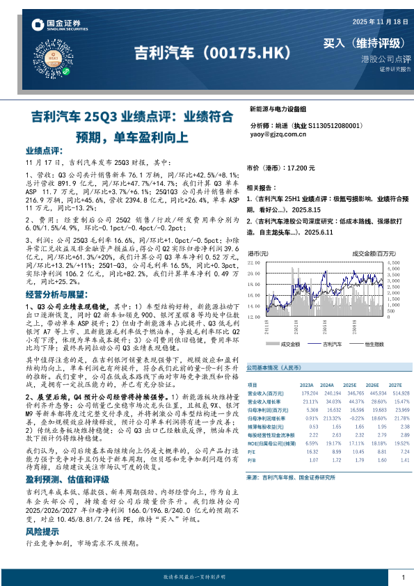 【国金证券】【202511】吉利汽车25Q3业绩点评_业绩符合预期_单车盈利向上-4页