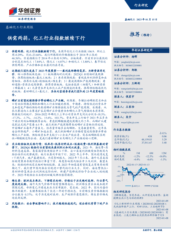 【华创证券】【20230115】基础化工行业周报:供需两弱,化工行业指数继续下行-62页