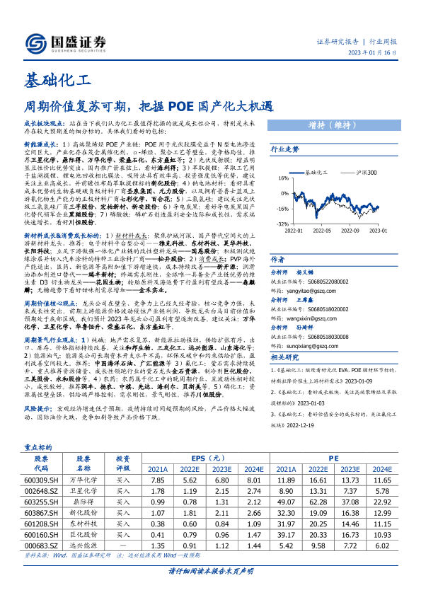 【国盛证券】【20230116】基础化工行业周报:周期价值复苏可期,把握POE国产化大机遇-23页
