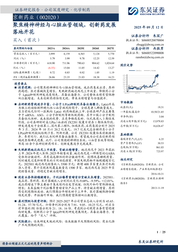 【东吴证券】【202509】京新药业(002020)-聚焦精神神经与心脑血管领域,创新药发展落地开花-25页