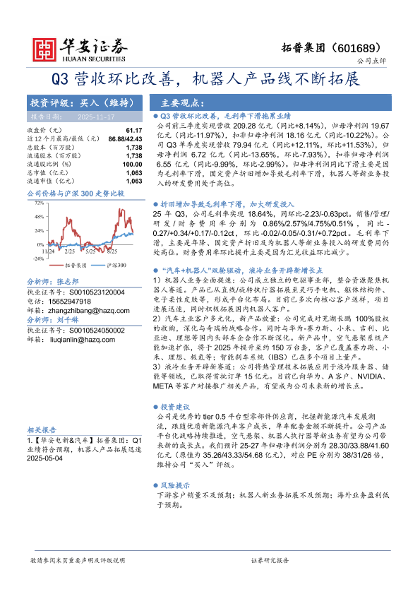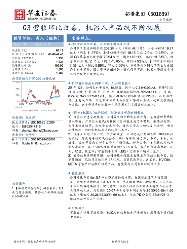 【华安证券】【202511】Q3营收环比改善,机器人产品线不断拓展-4页