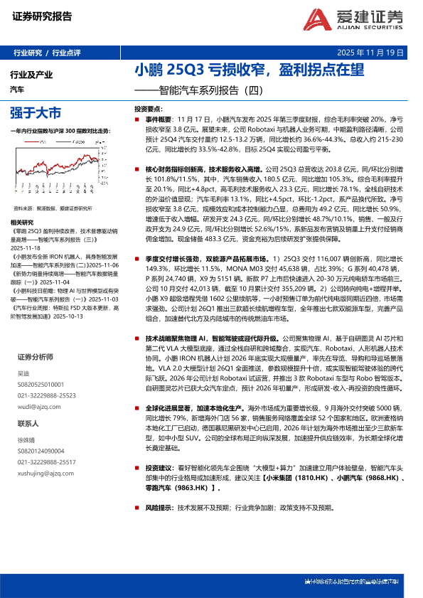 【爱建证券】【202511】小鹏 25Q3亏损收窄,盈利拐点在望——智能汽车系列报告(四)-2页