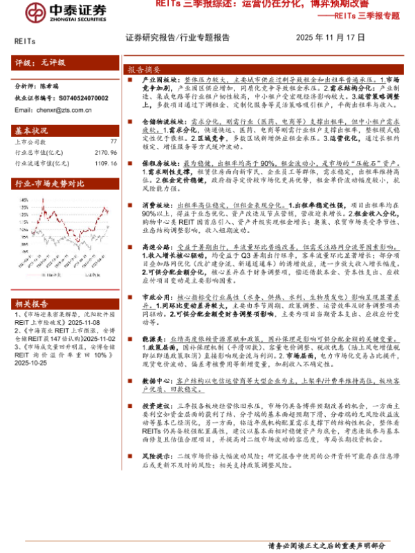 【中泰证券】【202511】RE ITs三季报综述:运营仍在分化,博弈预期改善-29页