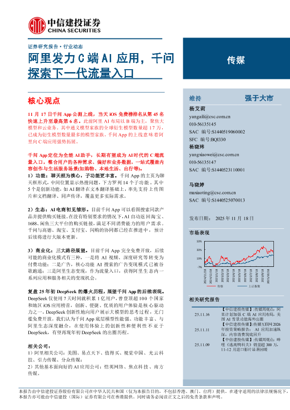 【中信建投证券】【202511】传媒行业动态:阿里发力C端AI应用,千问探索下一代流量入口-11页