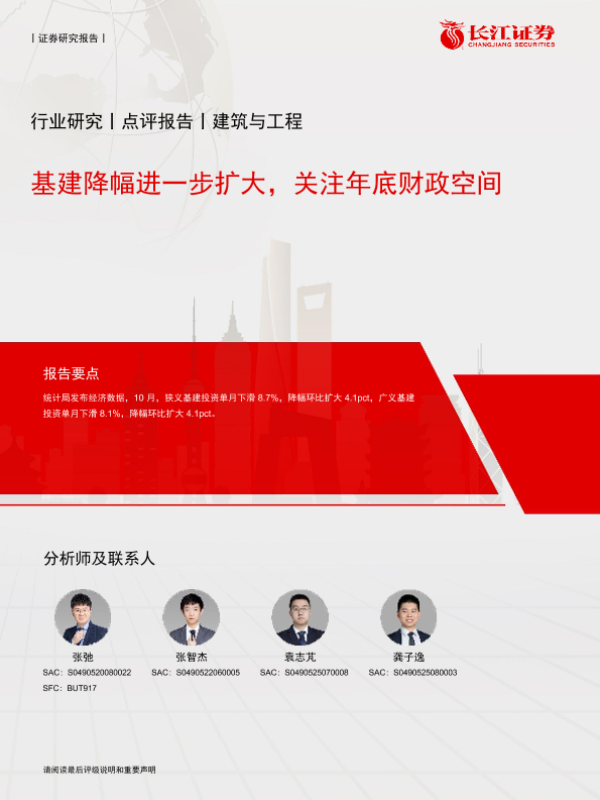 【长江证券】【202411】基建降幅进一步扩大,关注年底财政空间-5页