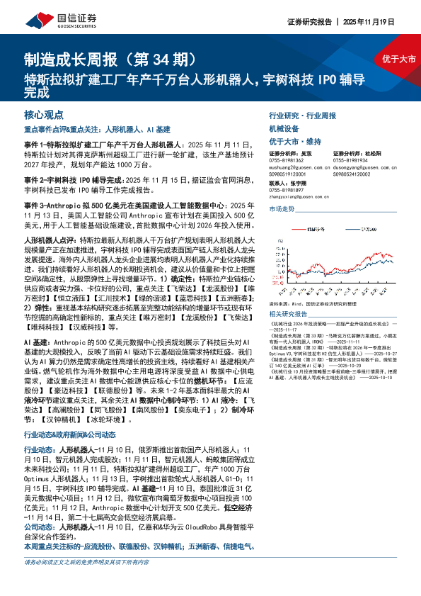 【国信证券】【202511】机械设备行业制造成长周报(第34期):特斯拉拟扩建工厂年产千万台人形机器人,宇树科技IPO辅导完成-9页