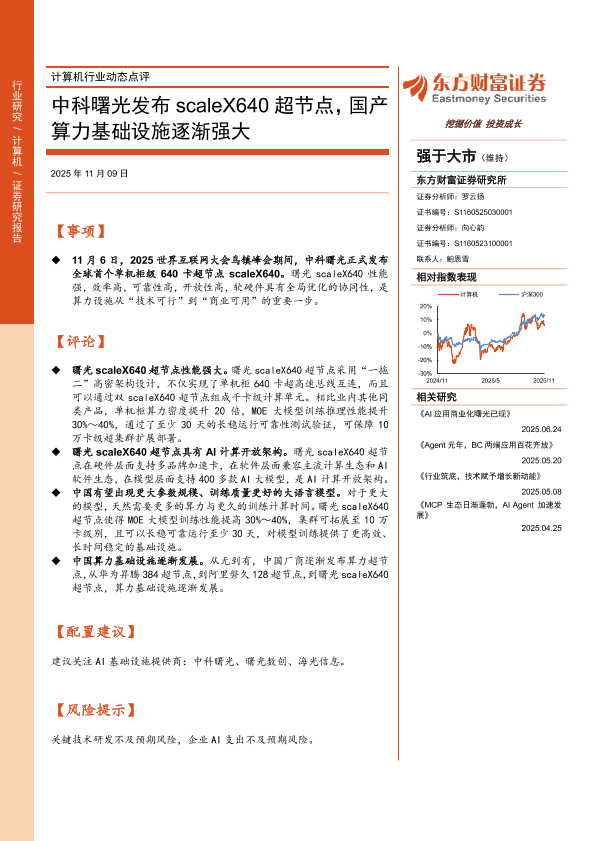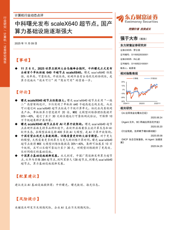 【东方财富证券】【202511】计算机行业动态点评:中科曙光发布scaleX640超节点,国产算力基础设施逐渐强大-2页