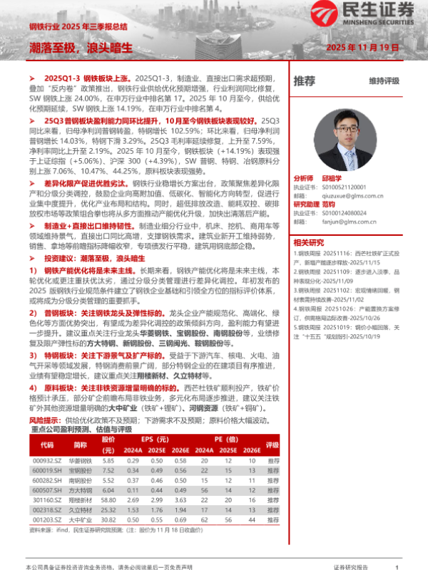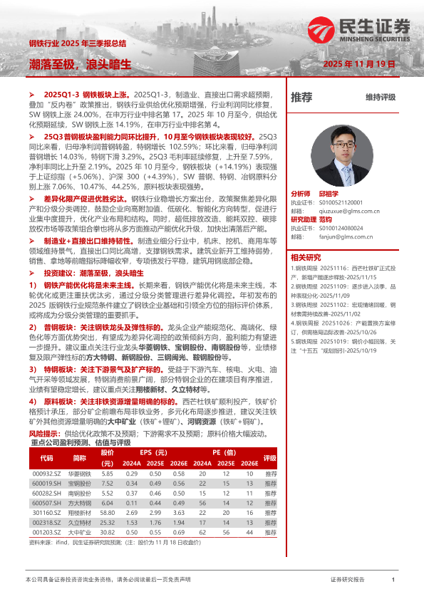 【民生证券】【202511】钢铁行业 2025年三季报总结:潮落至极,浪头暗生-27页