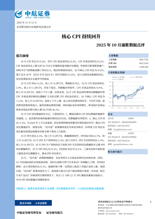 【中航证券】【202510】2025年10月通胀数据点评_核心CPI持续回升-6页