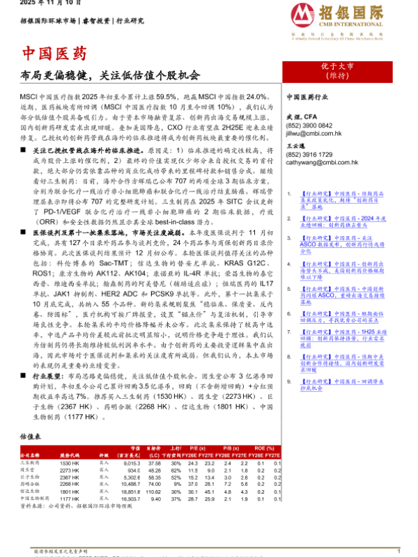 【招银国际环球市场】【202511】中国医药-布局更偏稳健,关注低估值个股机会-5页