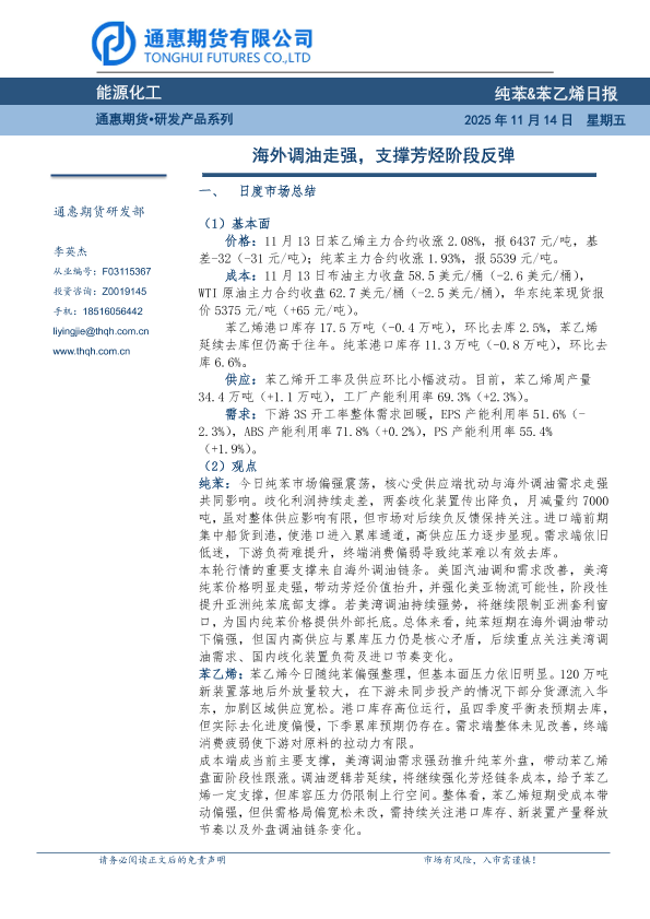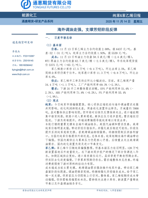【通惠期货研发部】【202511】能源化工 纯苯&苯乙烯日报-7页