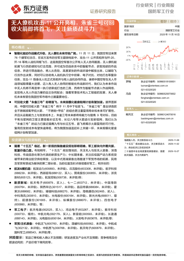【东方证券】【202511】国防军工行业行业周报 ——无人僚机攻击-11公开亮相,朱雀三号可回收火箭即将首飞,关注新质战斗力-12页