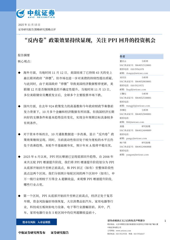 【中航证券】【202511】“反内卷”政策效果持续显现,关注PPI回升的投资机会-10页