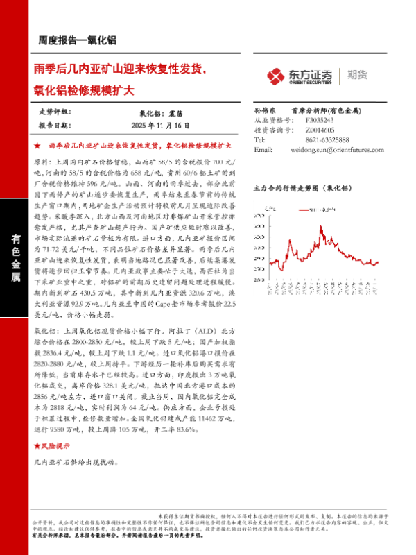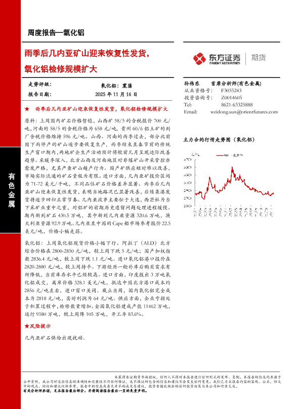 【东证期货】【202511】氧化铝周度报告_雨季后几内亚矿山迎来恢复性发货_氧化铝检修规模扩大-13页