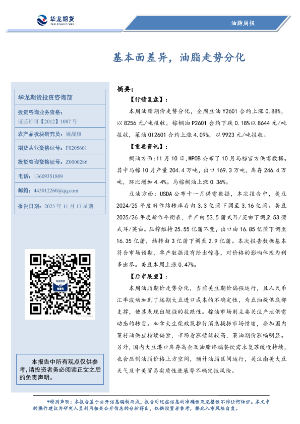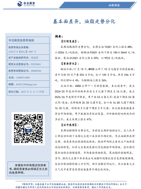 【华龙期货】【202511】油脂周报_基本面差异_油脂走势分化-7页