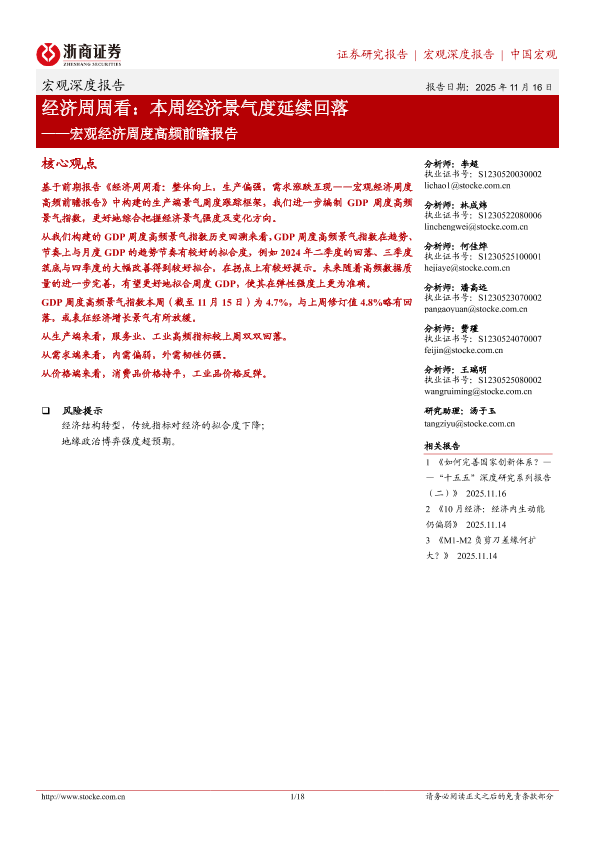 【浙商证券】【202511】经济周周看:本周经济景气度延续回落——宏观经济周度高频前瞻报告-18页