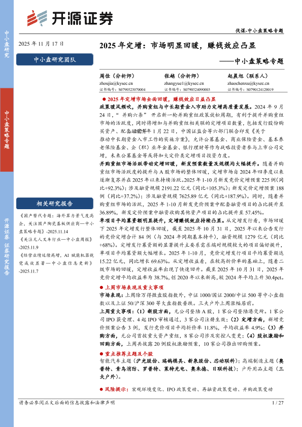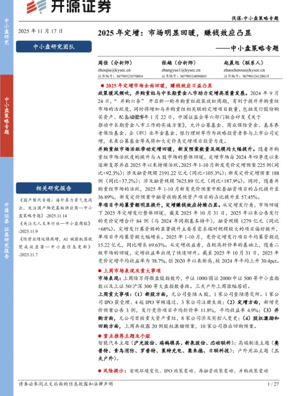 【开源证券】【202511】2025年定增:市场明显回暖,赚钱效应凸显-27页