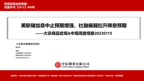 【中信期货】【20230115】大宗商品宏观&中观周度观察:美联储加息中止预期增强,社融偏弱拉升降息预期-63页