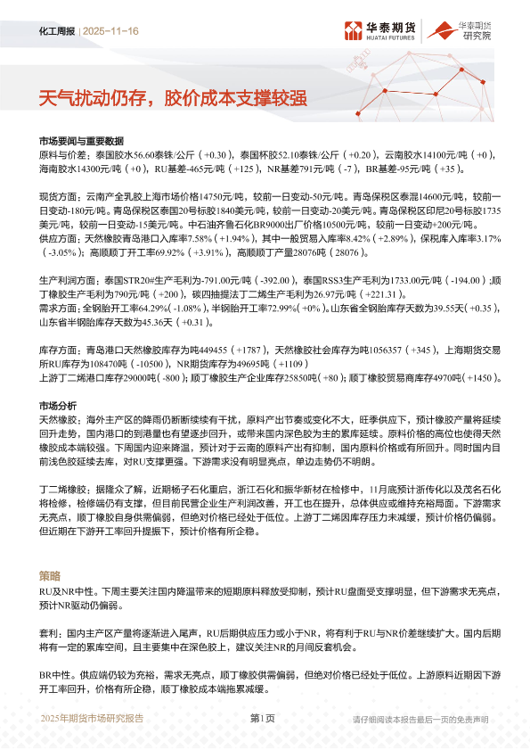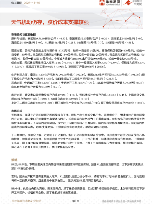 【华泰期货】【202511】天气扰动仍存,胶价成本支撑较强-17页
