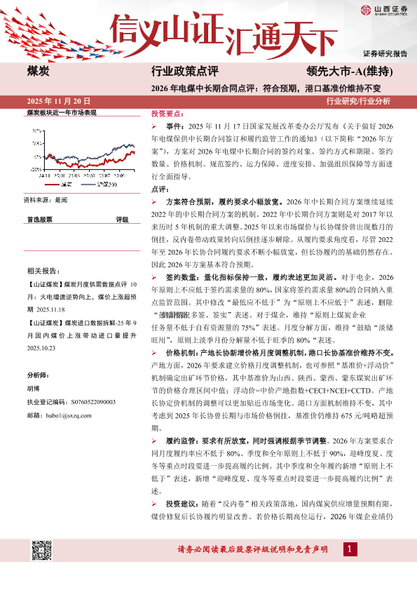 【山西证券】【202511】2026年电煤中长期合同点评:符合预期,港口基准价维持不变-6页
