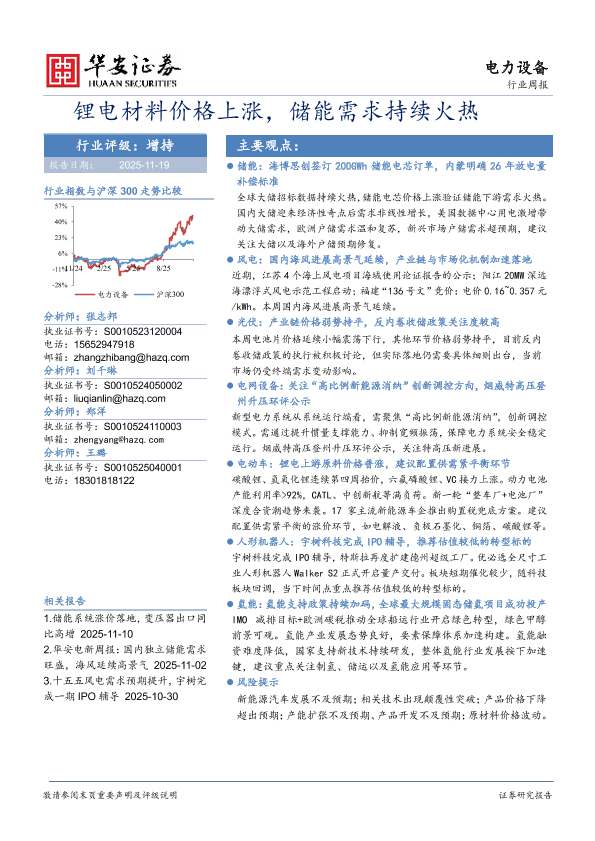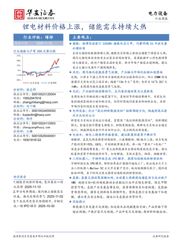 【华安证券】【202511】锂电材料价格上涨,储能需求持续火热-15页