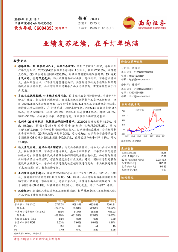 军工 订单饱满 远火武器 业绩复苏 制导系统
