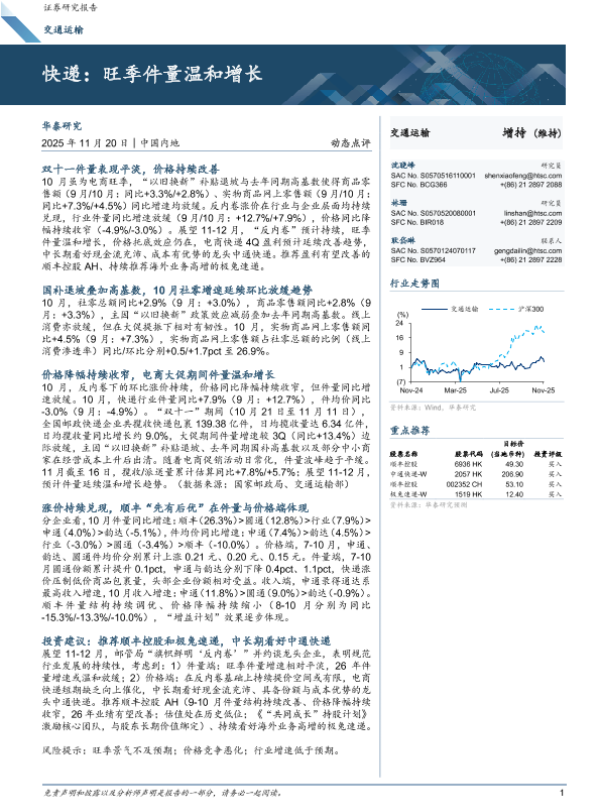 【华泰证券】【202511】快递:旺季件量温和增长-6页