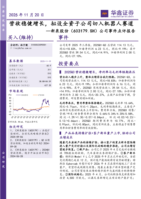 【华鑫证券】【202511】营收稳健增长,拟设全资子公司切入机器人赛道-5页