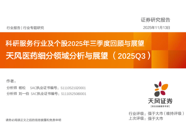 【天风证券】【202511】科研服务行业及个股2025年三季度回顾与展望-15页