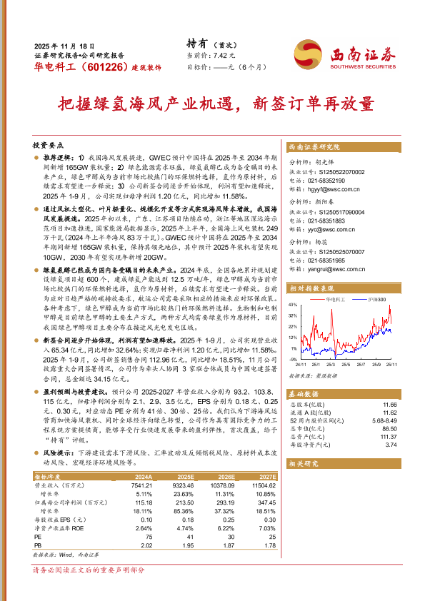 【西南证券】【2025】把握绿氢海风产业机遇,新签订单再放量-20页