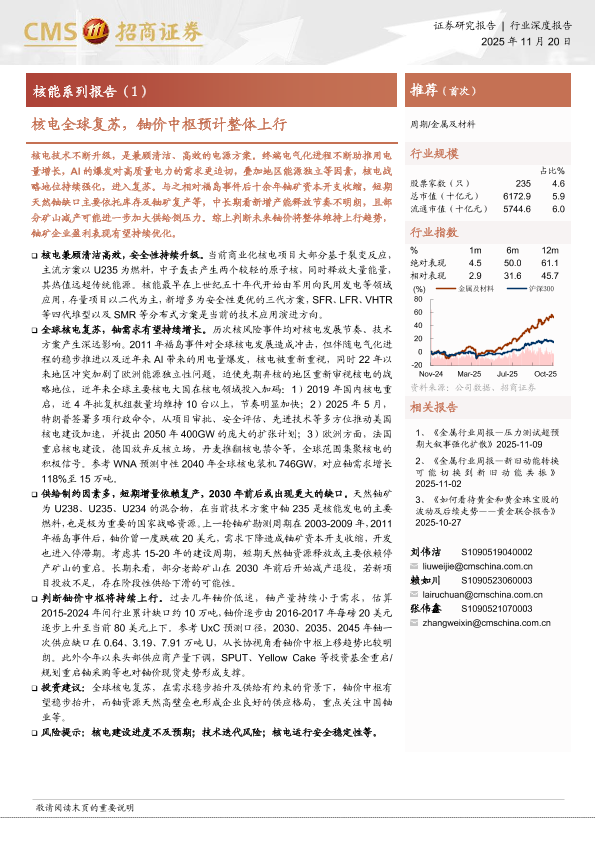 【海通证券】【202511】核电全球复苏,铀价中枢预计整体上行-18页