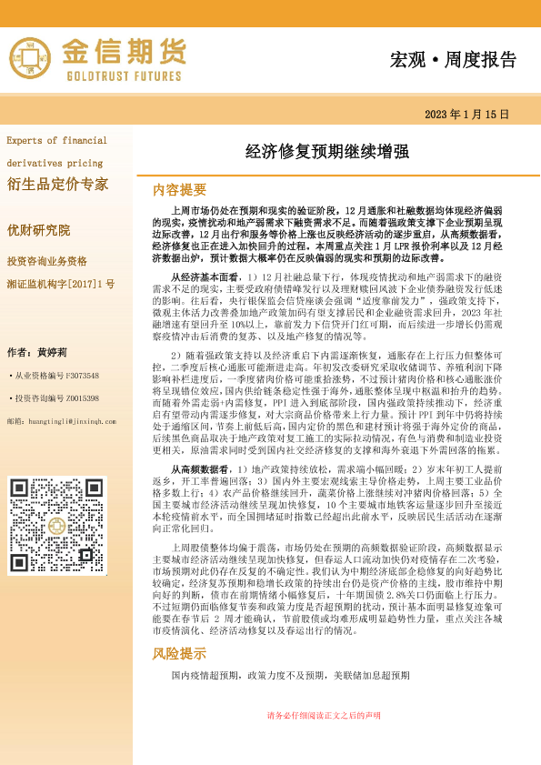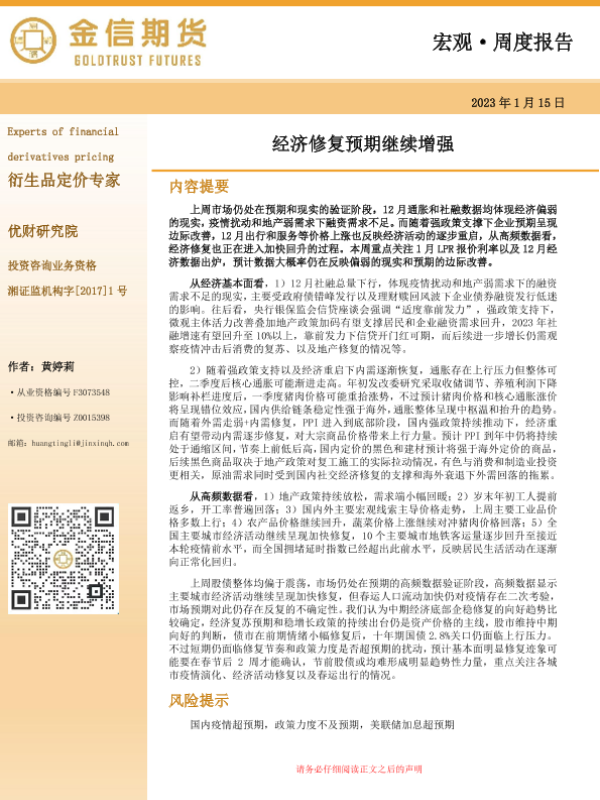 【金信期货】【20230115】宏观·周度报告:经济修复预期继续增强-15页