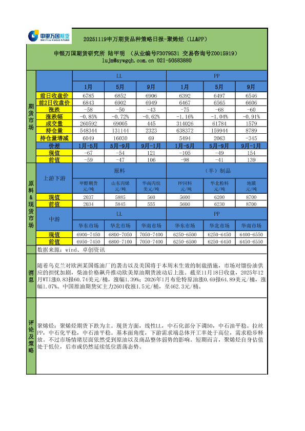 【申银万国期货】【202511】20251119申万期货品种策略日报-聚烯烃(LL&PP)-2页