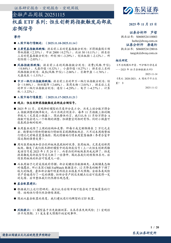 【东吴证券】【202511】金融产品周报 20251115 权益 ETF系列:恒生创新药指数触发局部底右侧信号-20页