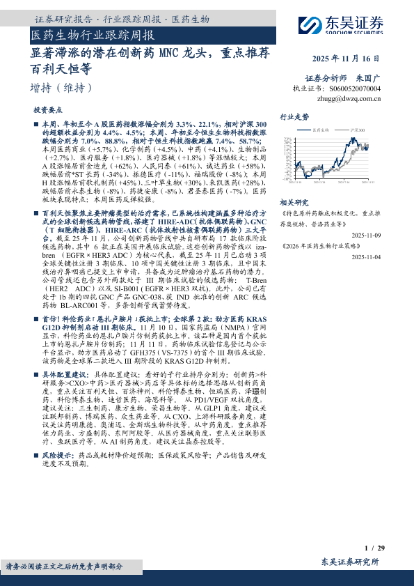 【东吴证券】【202511】医药生物行业跟踪周报·行业跟踪周报·医药生物-29页