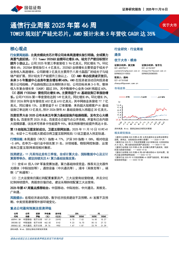 【国信证券】【202511】通信行业周报2025年第46周:TOWER规划扩产硅光芯片,AMD预计未来5年营收CAGR达35%-13页