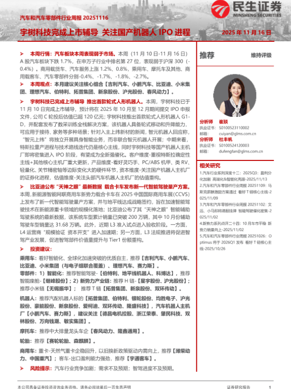 【民生证券】【202511】汽车和汽车零部件行业周报:宇树科技完成上市辅导 关注国产机器人IPO进程-25页
