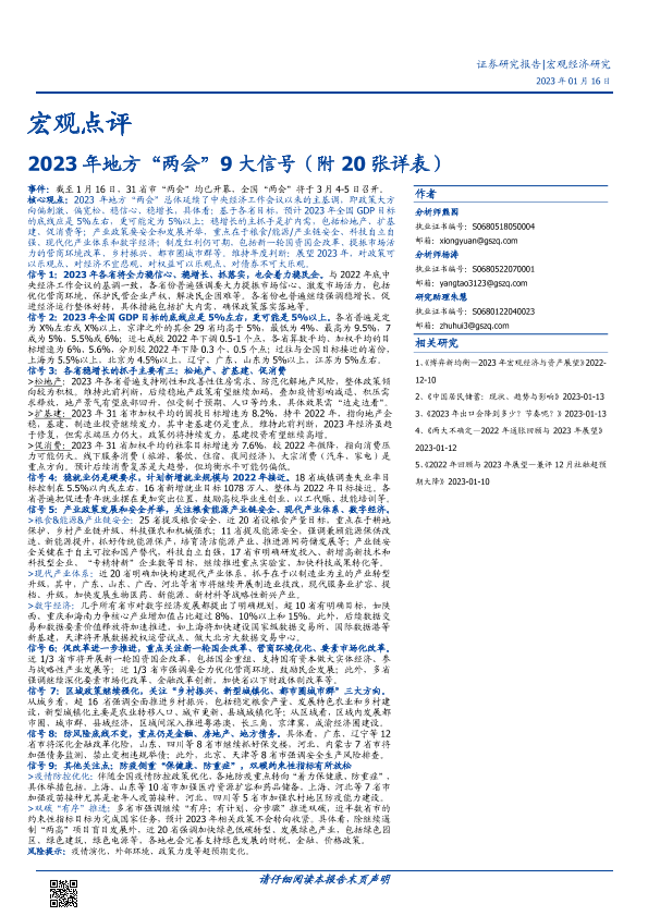 【国盛证券】【20230116】宏观点评:2023年地方“两会”9大信号(附20张详表)-29页